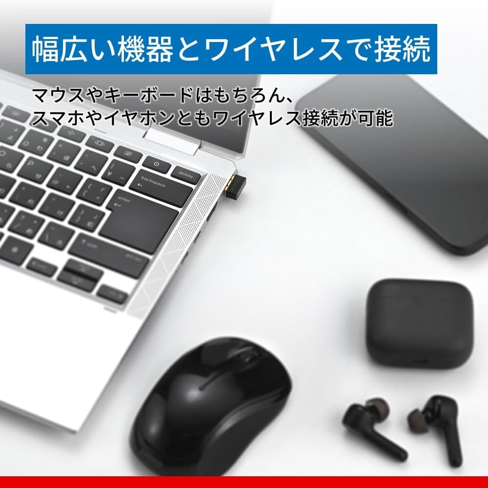 ワイヤレスマウスやキーボード、イヤホン、スピーカーなど、複数のBluetooth機器を手軽に使いたい方に特におすすめ。デスク周りをすっきりさせつつ、快適なワイヤレス環境を実現できます。
